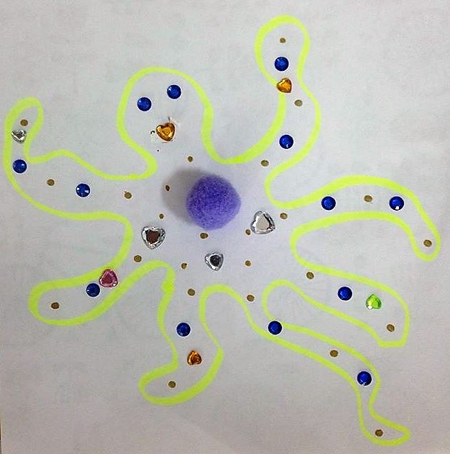 • Materiales: Pegatinas joya, pompones y rotuladores